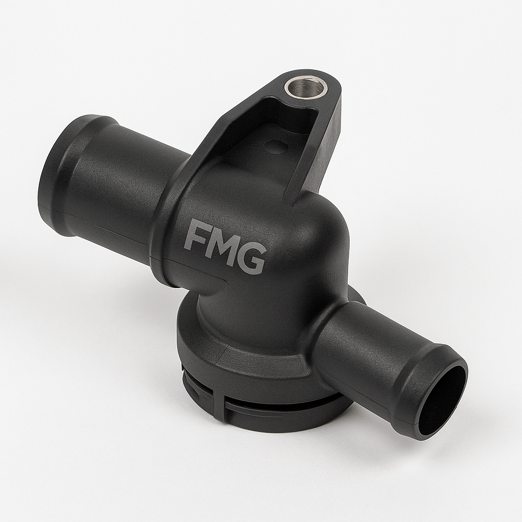 وصلة خروج سائل تبريد أصلية عالية الجودة من FMG رقم 11118619408، مصممة لتأمين تدفق ثابت وآمن لسائل التبريد بين أجزاء النظام ومنع أي تسريب.
