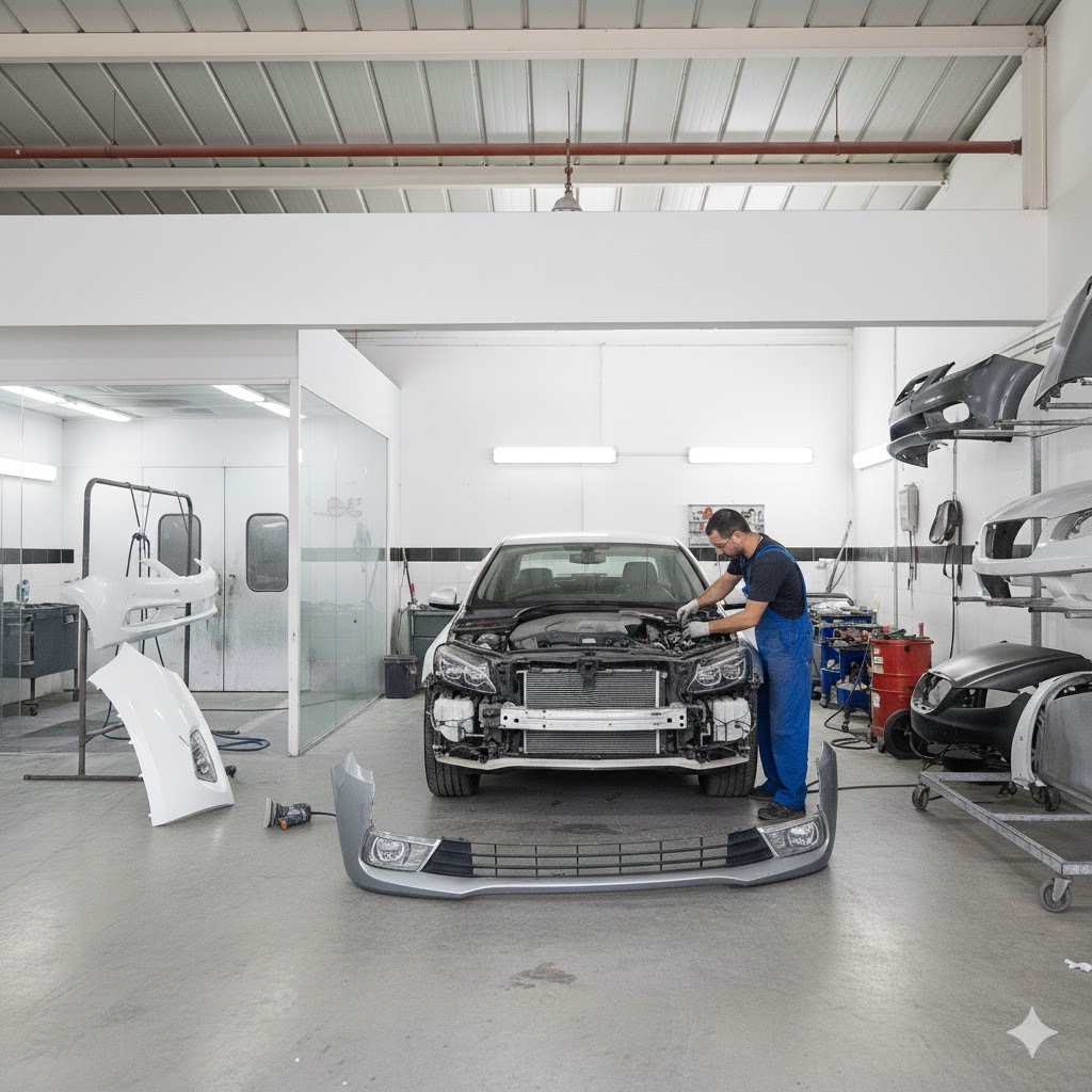 خدمة تغييراو سمكره او رش جسر الصدام الأمامي للسيارة مع فحص نقاط التثبيت والحساسات وضمان السلامة.