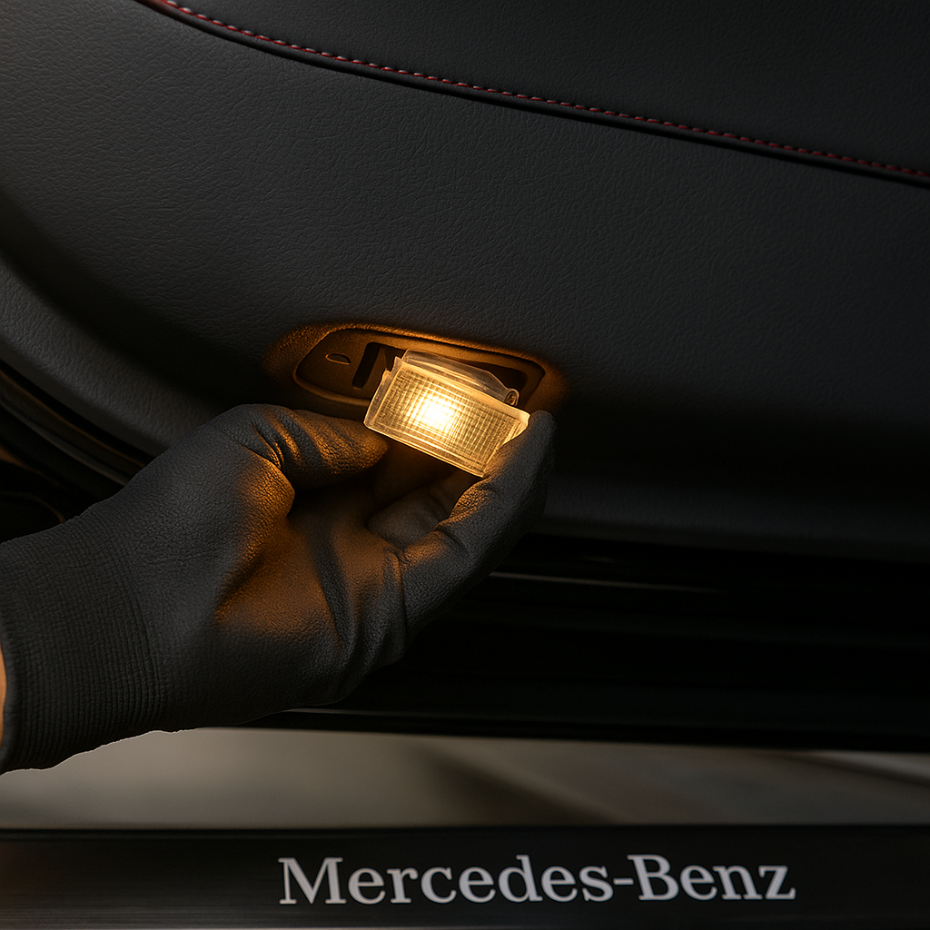 توفر FMG خدمة تغيير لمبة إضاءة الأبواب الداخلية (Door Courtesy Light) المسؤولة عن إنارة الأرض عند فتح الباب، سواء كانت لمبة عادية أو LED أو لمبة عرض شعار (Logo Projector).