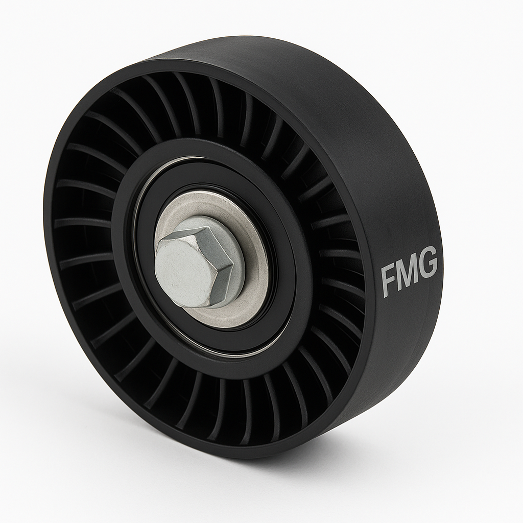 بكرة شداد السير من FMG مسؤولة عن الحفاظ على التوتر المناسب في سير المحرك الذي يشغّل المكونات الحيوية مثل الدينامو، الكمبروسر، وطرمبة الماء.